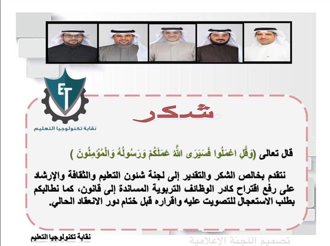 نقابة تكنولوجيا التعليم A Twitter قال تعالى وقل اعملوا فسيرى الله عملكم ورسوله والمؤمنون نتقدم بخالص الشكر والتقدير إلى لجنة شئون التعليم والثقافة والإرشاد على رفع اقتراح كادر الوظائف التربوية المساندة إلى قانون
