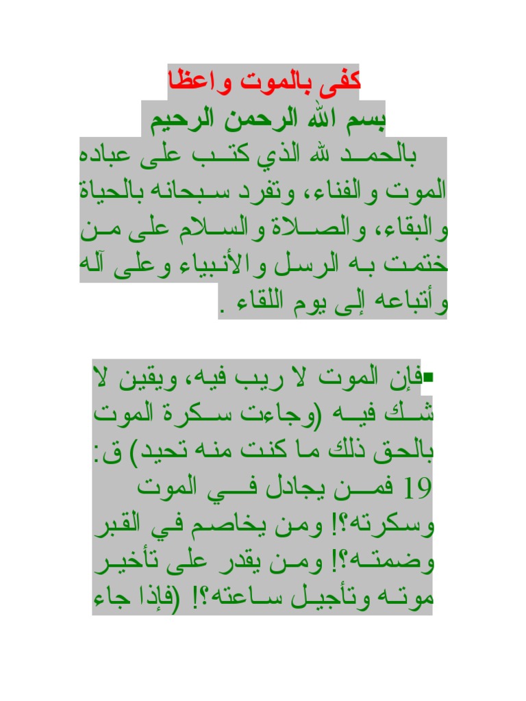 الاعتبار بمصيبة الموت ك ف ى بالموت و اع ظ ا