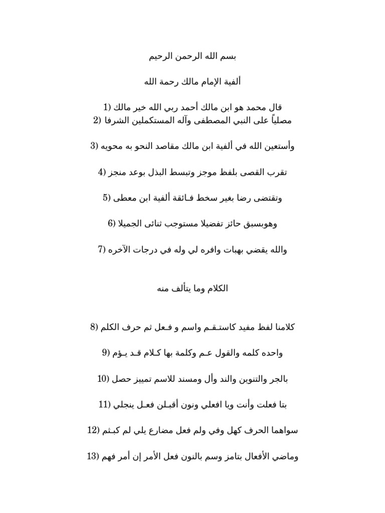 ألفية ابن مالك الكلمة والكلام علامات اللغة العربية للطلاب والمعلمين Facebook