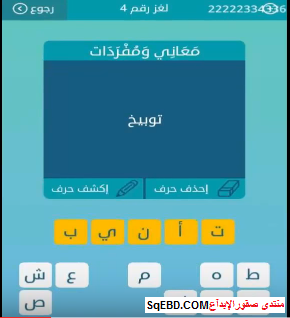 اجابة لغز توبيخ من لغز رقم 4 من المجموعة الاولى من لعبة كلمات متقاطعة صقور الإبدآع